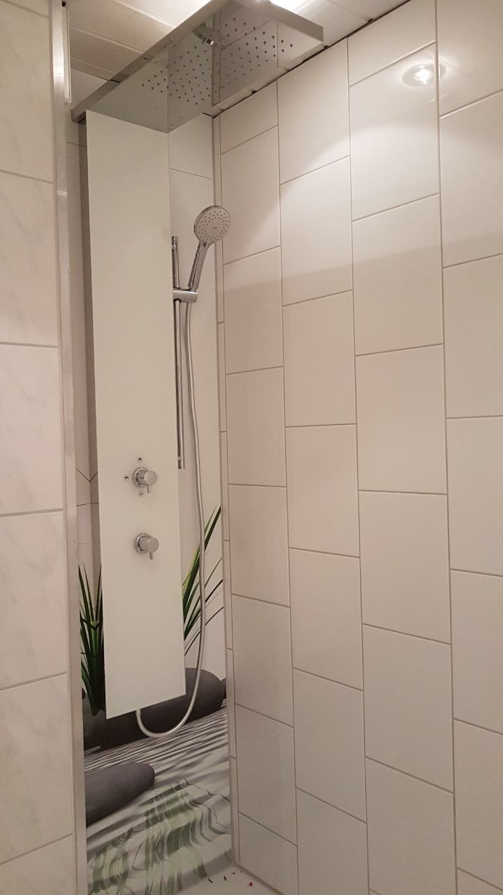 - kreative Badgestaltung mit Fliesen und Badmöbel